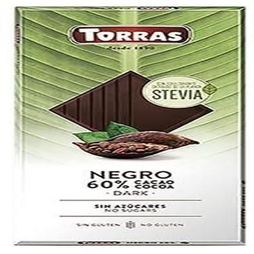 Chocolate Negro 60% Cacao con Stevia · Torras · 100 gramos
